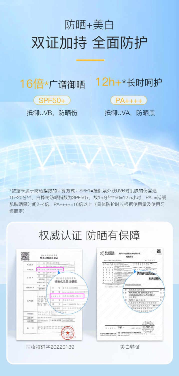 【2Support】Dokdo Sunscreen Moisturizing UV Protection Waterproof Sweatproof Military Training Women Rounenlai Official Flagship