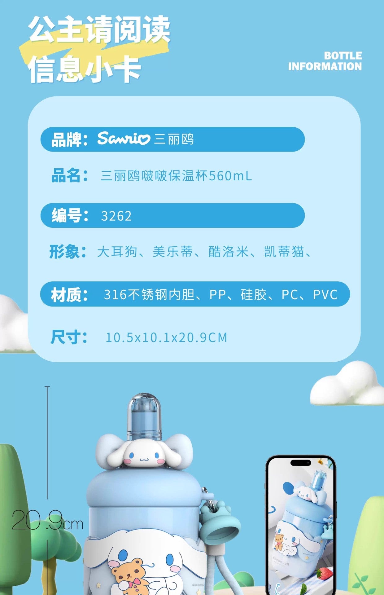 Aikes Sanrio Insulated Cup Kuromi Large Capacity Water Bottle Portable Straw Cup High-Value Gift for Girls