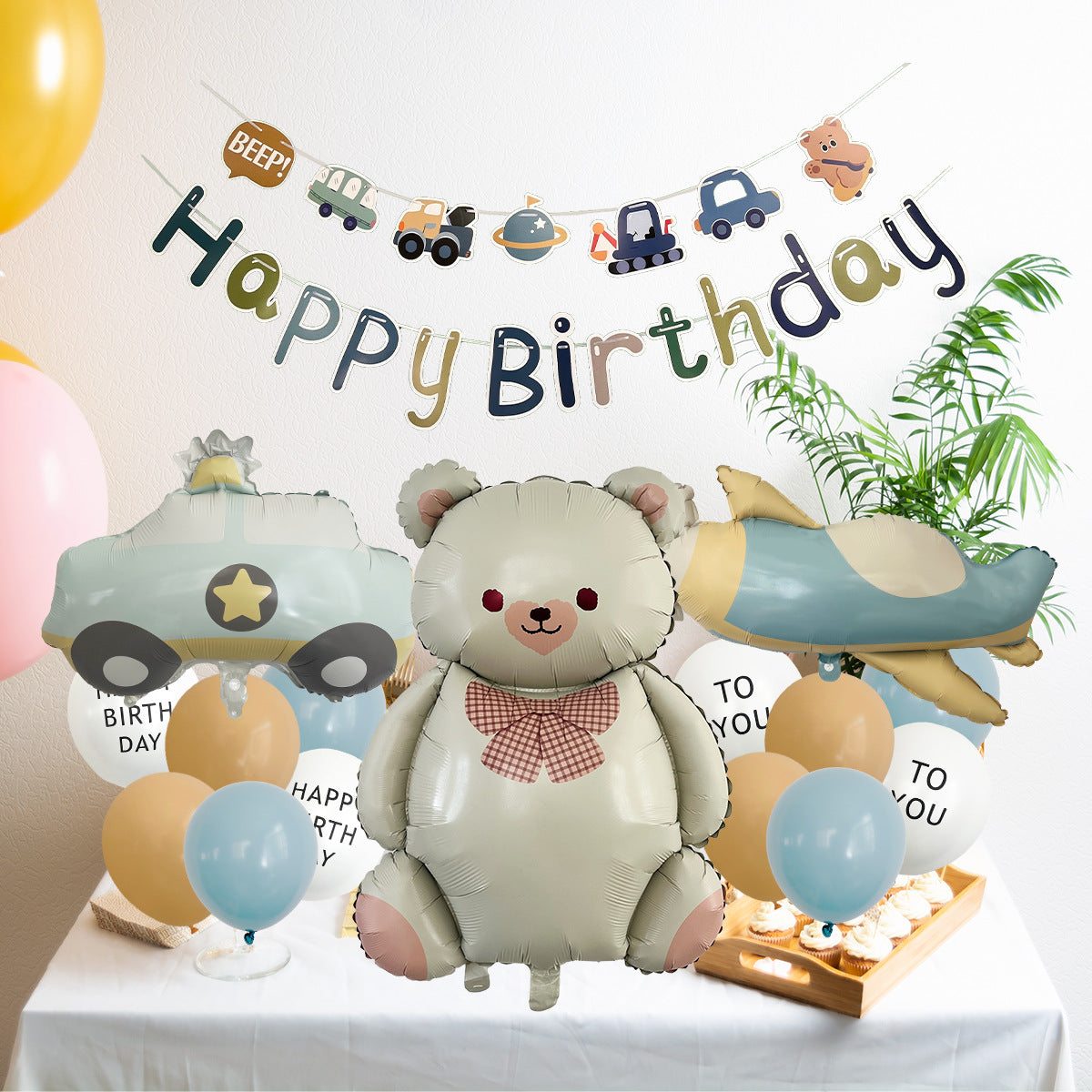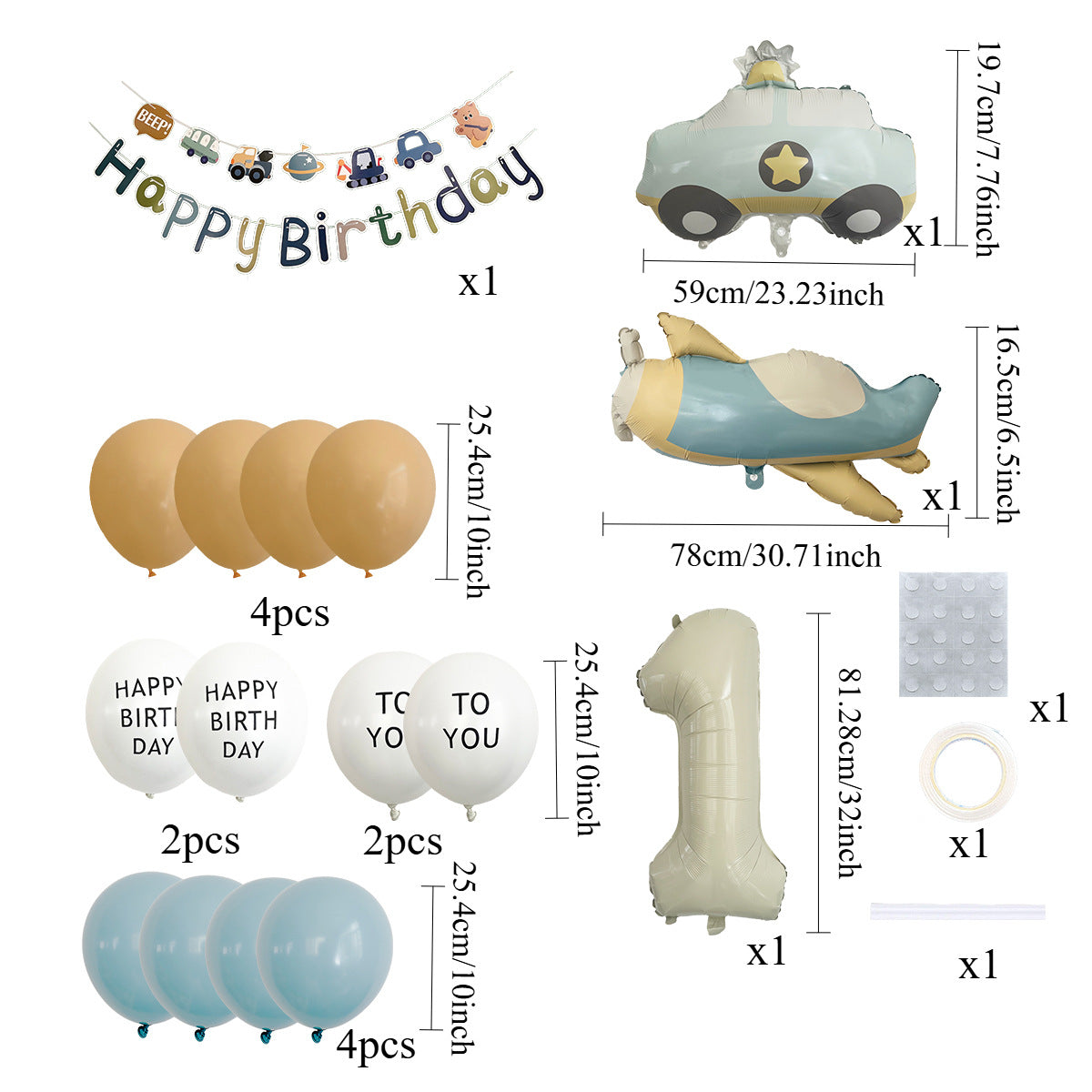 Amazon Matte Retro Police Car Airplane Aluminum Foil Balloon Set First Birthday Balloon Venue Decoration Photography