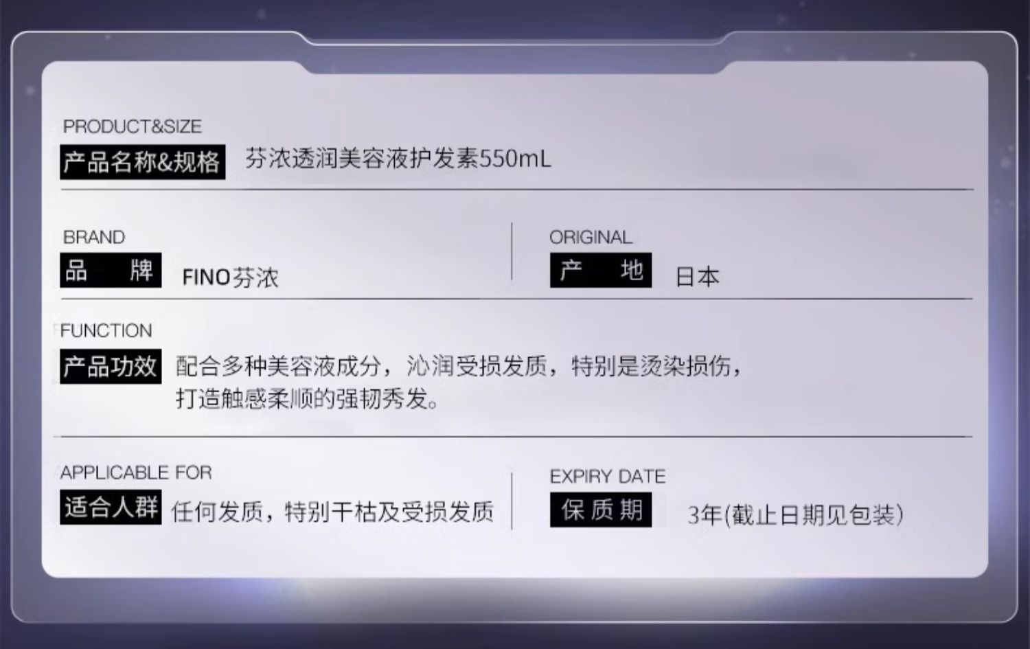 【Ding Yuxi Same Style】Fennong FINO Moisturizing Beauty Serum Shampoo for Damaged Hair from Dyeing and Perming550ml*2