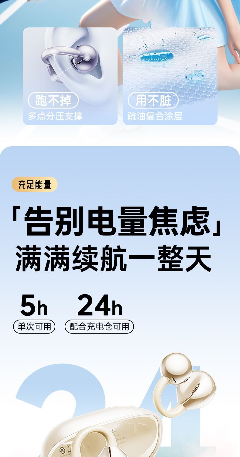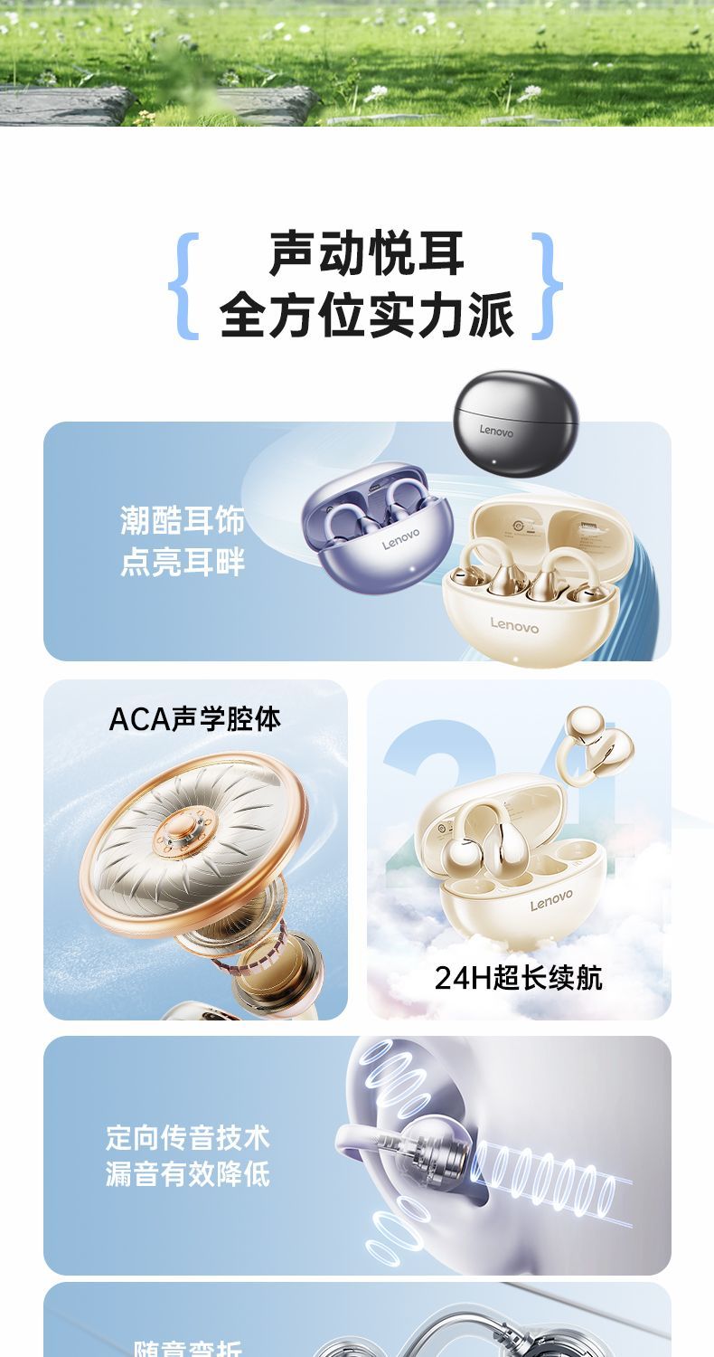 Lenovo Air Bone Conduction Bluetooth Earphones Wireless Ear Clip Type Ultra Long Battery Life High Sound Quality Sports Noise Reduction Special TA410