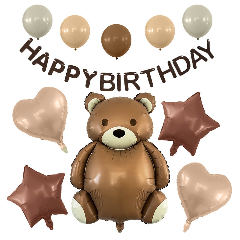 Matte Birthday Balloon Set with Banner Decoration Party Setup Baby Shower Bear Airplane Rainbow Matte Balloons