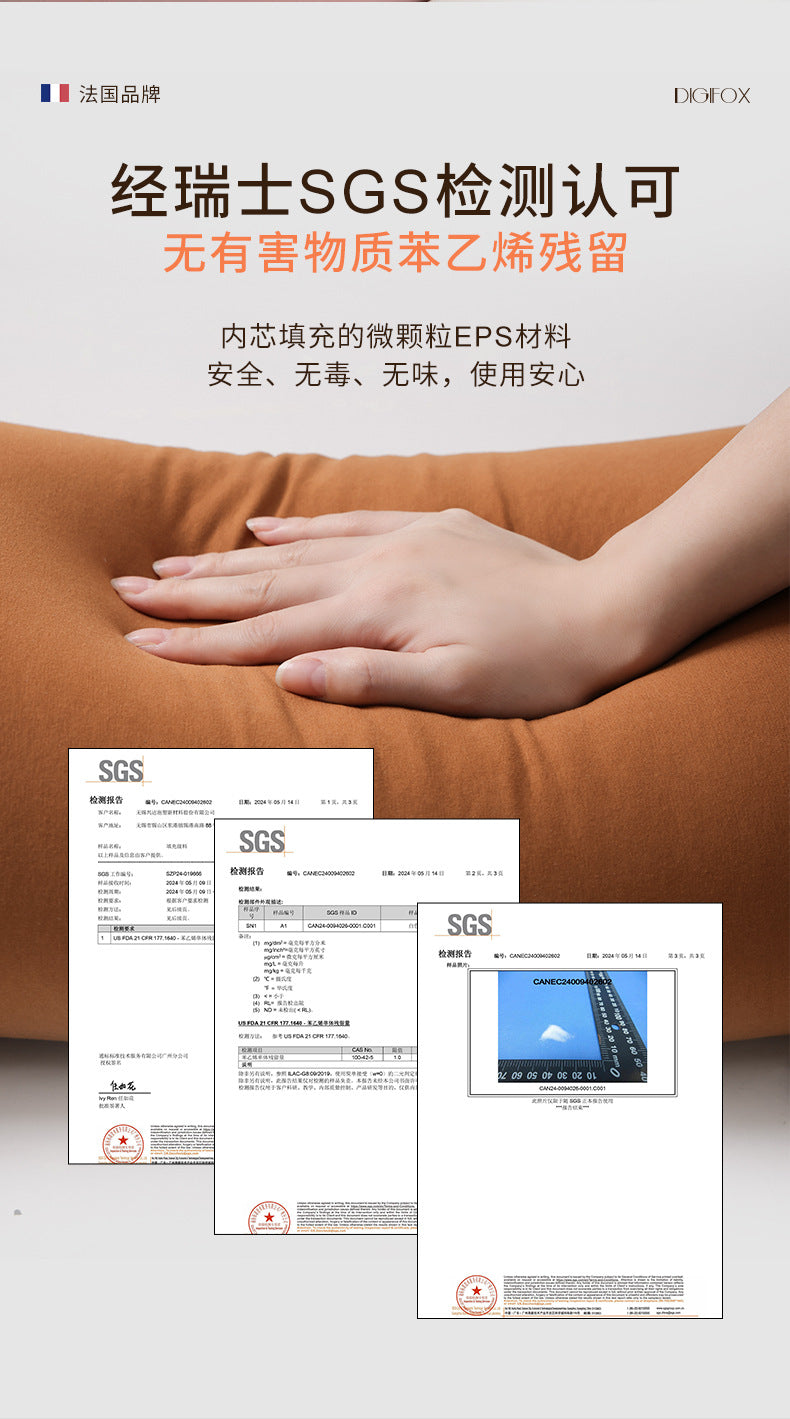 Outer cover made of high-stretch fabric, inner lining made of high-stretch sharkskin fabric, filled with food-grade EPS granules