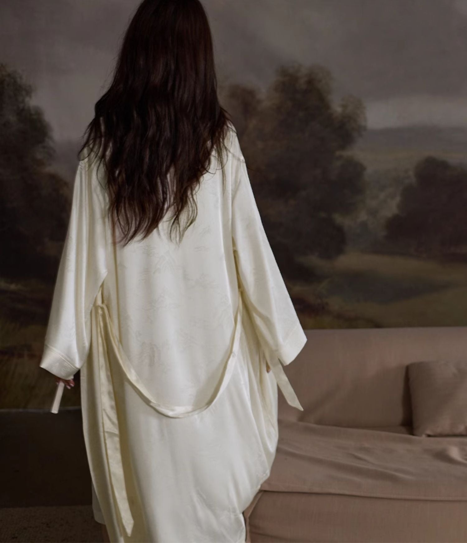 Tongyu Morning Robe for Women, Spring and Autumn Ice Silk Long Sleeve Nightgown, Mid-Length Winter Bathrobe, Two-Piece Pajama Set with Camisole Dress