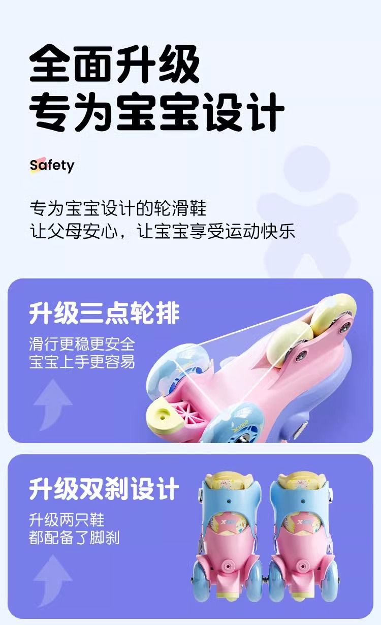 Xtep Roller Skates for Toddlers Boys and Girls Beginner Kids Roller Shoes3Years Old2Children's Double Row Roller Skates